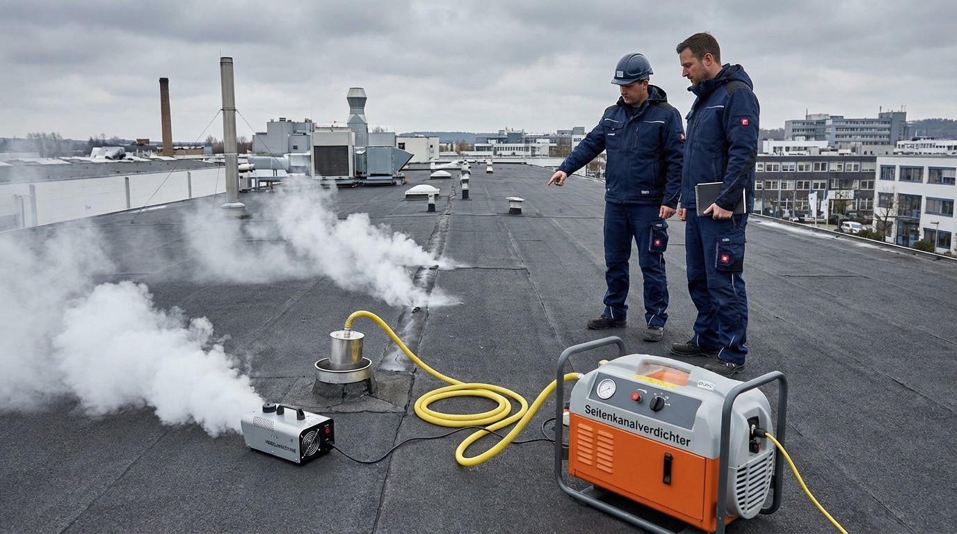 Kaltrauch unter die Abdichtungsbahn Ihres Flachdachs geblasen. Dazu